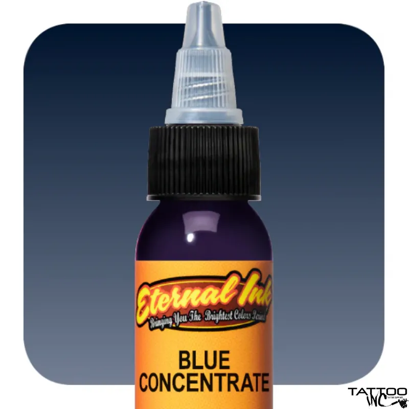 Eternal tattoo ink is a pre-dispersed ink manufactured in the USA. It is a non-toxic, glycerol free, water-based, vegan tattoo ink. You will find all the colors you could possibly imagine in the Eternal Ink Collection. Eternal Blue Concentrate is a translucent, very dark, pure blue color. This listing is for a 1ozbottle of Blue Concentrate. If you are looking for another color, shop by Color under the Eternal Ink Category.